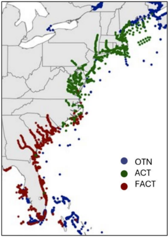 This research will simulate animal tracks and use animal movement models to determine the best places to put the fewest acoustic telemetry receivers to enhance acoustic telemetry coverage of commercially important migratory species. The project will work with stakeholders to identify key migratory species and will determine the most efficient layout for receiver locations considering species movement, cost, and fisheries gear avoidance.